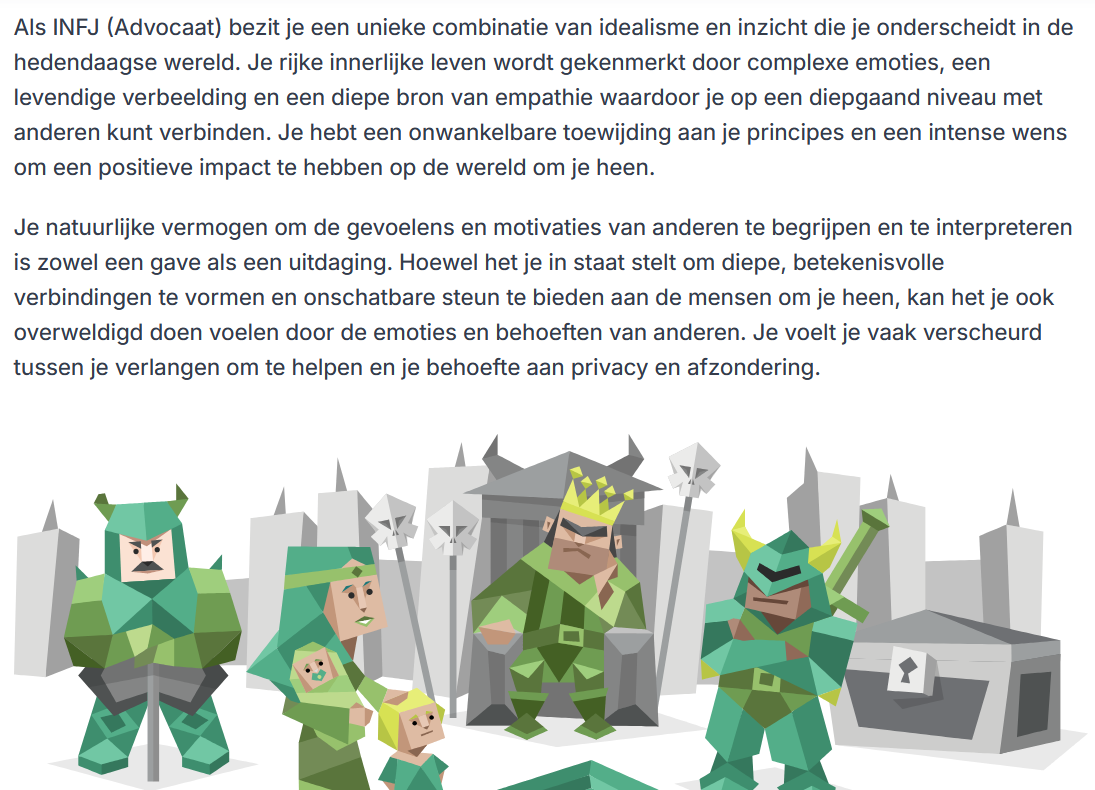 I made a personality test in week 5 on 16personalities.com to get some insight on what my core values are: