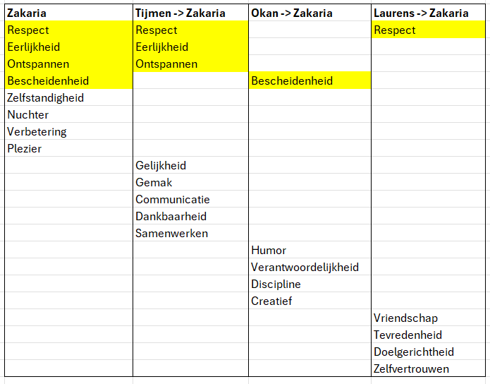 During one of our classes we had to write down the core values that represents us the best. After that three other individuals had to write down what core values they think belong to me. These results were then exchanged and compared: